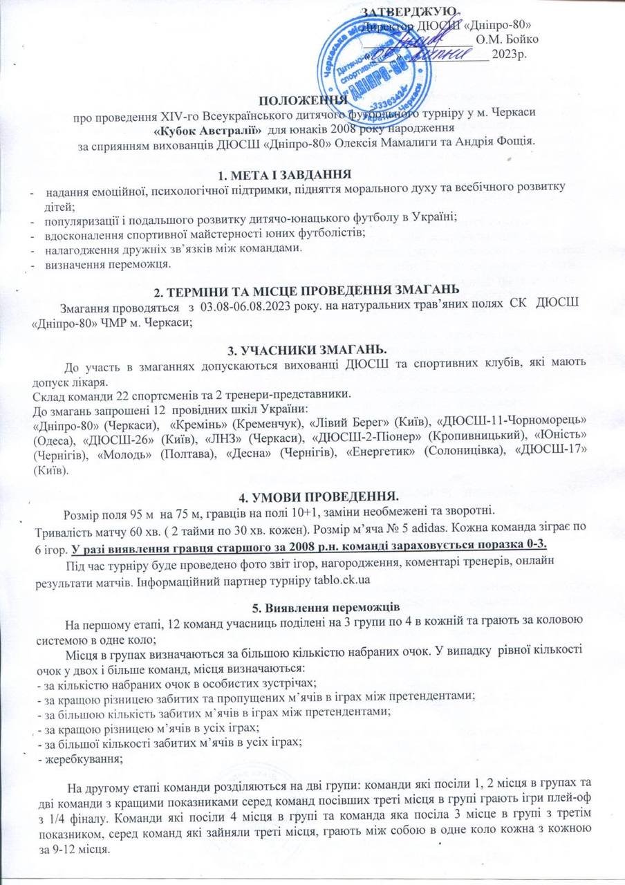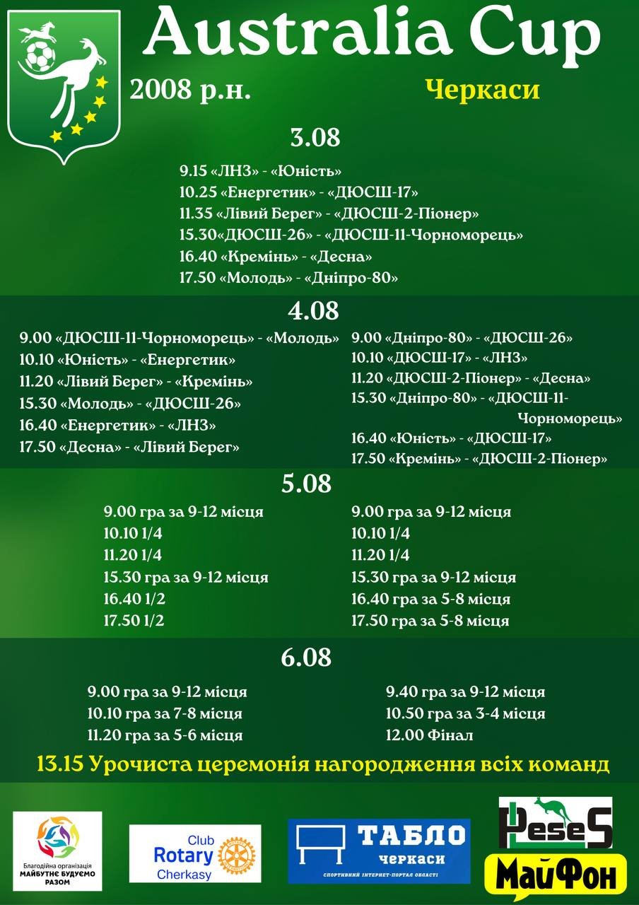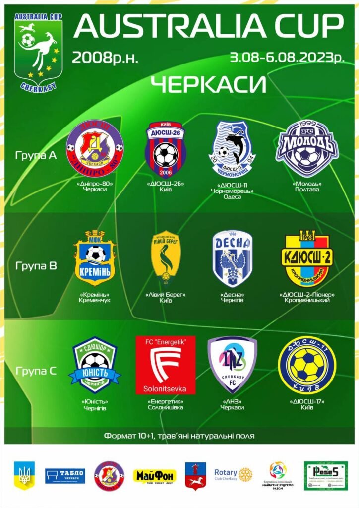 3 серпня у Черкасах розпочнеться «Australia Cup». Перші у гру вступають юнаки 2008 р.н.
