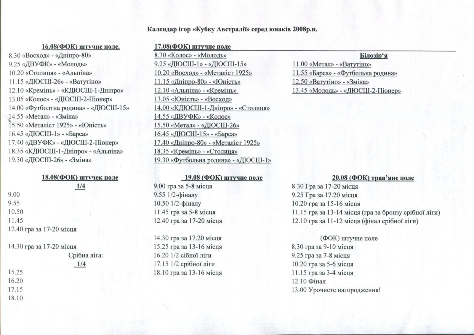 Витяг з регламенту XI Всеукраїнського турніру «Кубок Австралії» серед юнаків 2008 р.н.
