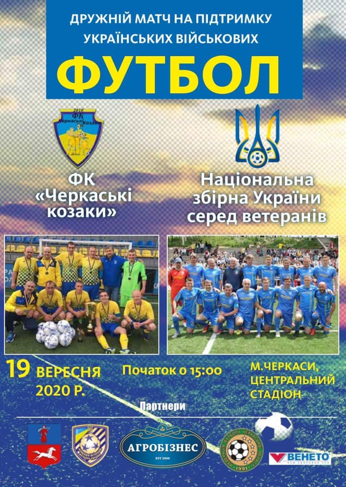 19 вересня на Центральному стадіоні Черкас відбудеться товариський матч між Черкаськими Козаками й збірною України серед ветеранів.