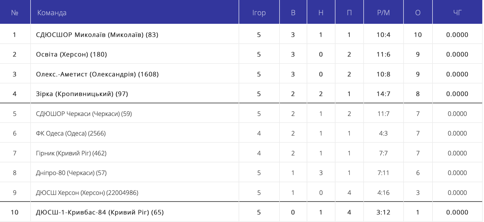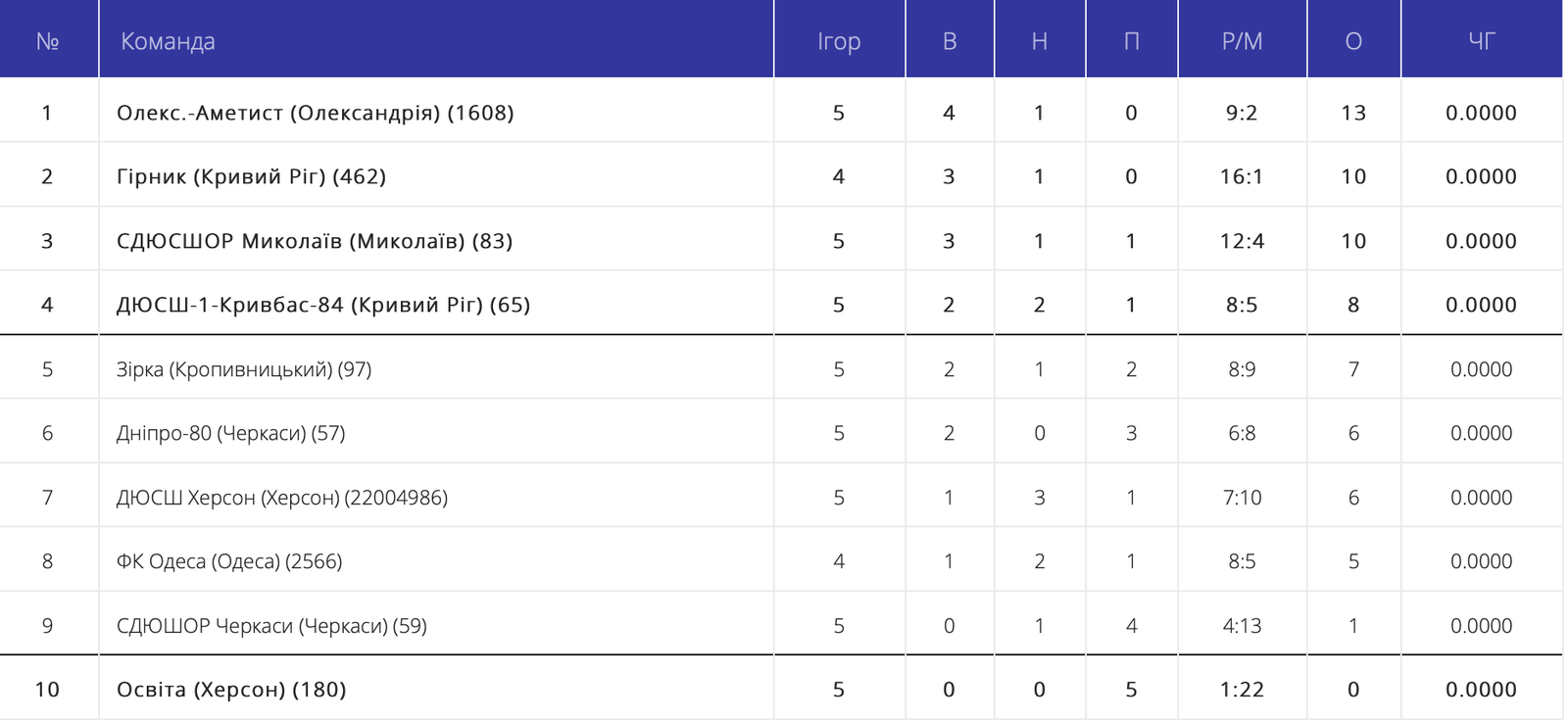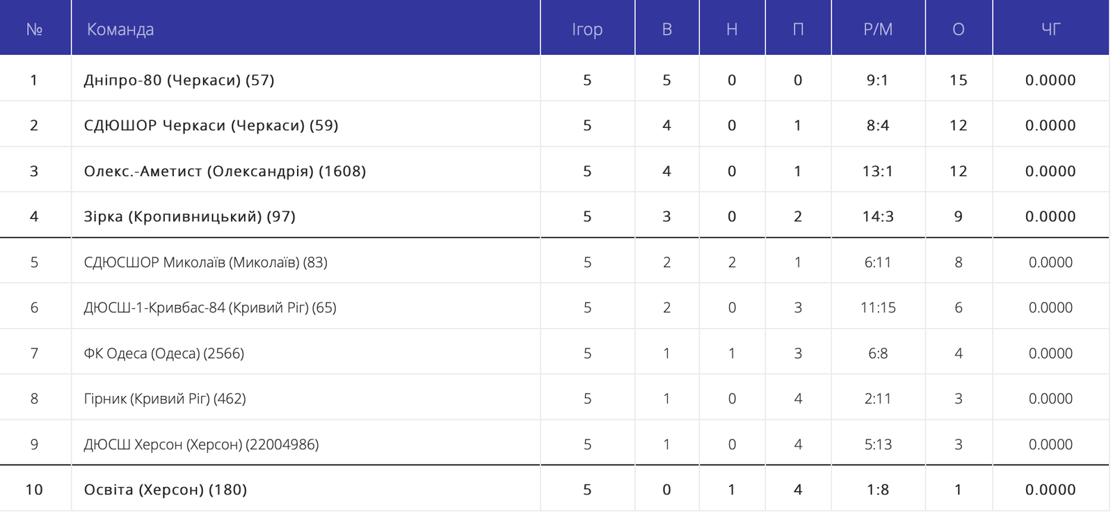 Рекордсменом за перемогами залишається Дніпро-80 U16, який виграв п’ять матчів із п’яти в поточному чемпіонаті.