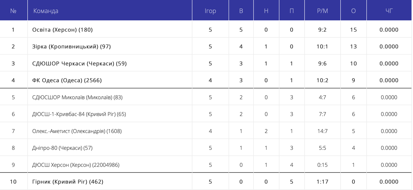 U15 «Освіта» Херсон – «Дніпро-80» Черкаси 5:0