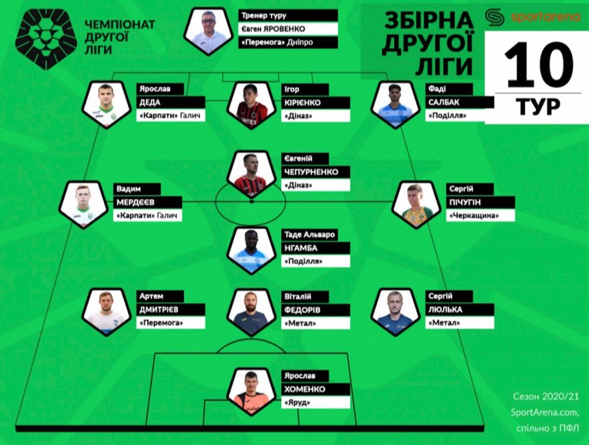 Sport Arena називає символічну збірну чергового туру Другої ліги сезону 2020/21.
