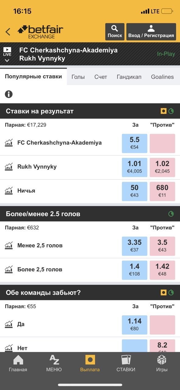 У грі 9 туру Першої ліги чемпіонату України між Черкащиною та Рухом (1:6) зафіксовані аномальні ставки.