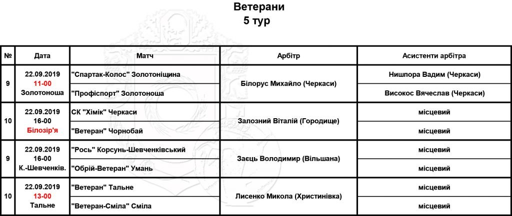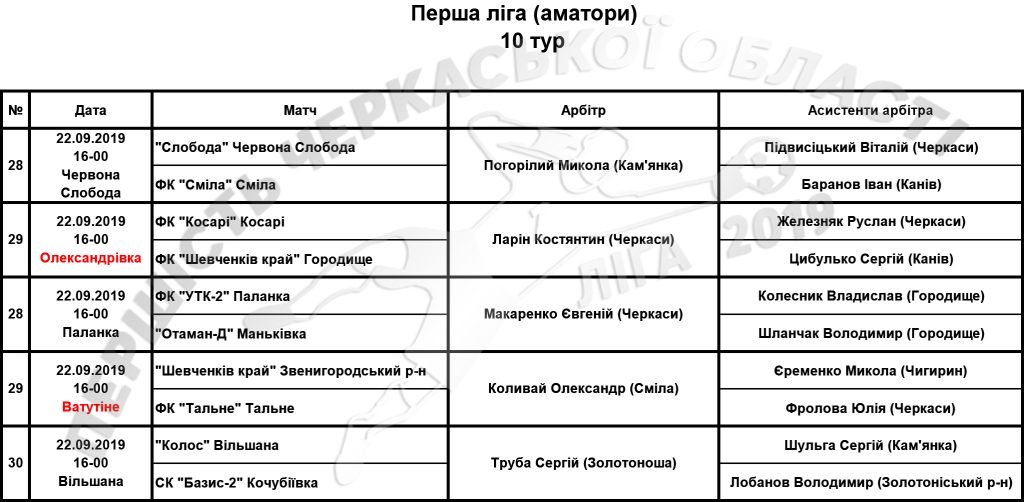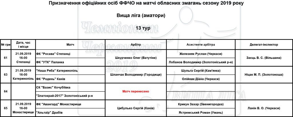 Стали відомі кадрові призначення арбітрів на 13 тур чемпіонату області у вищий лізі, 10 тур у першій лізі, ветеранів і дітей.