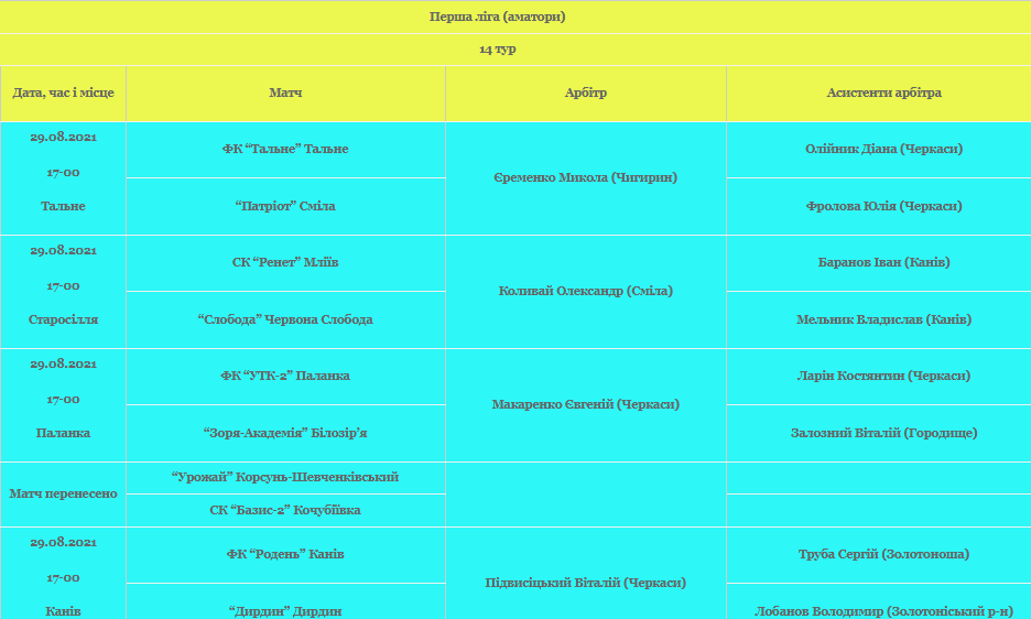 Призначення арбітрів на чемпіонат області з футболу серед команд Першої ліги