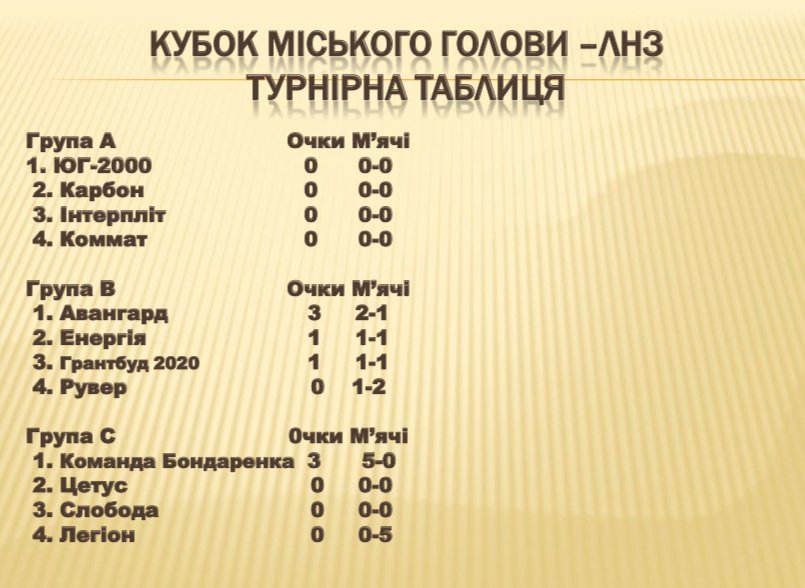 Турнірна таблиця «Кубку міського голови – ЛНЗ» після першого зіграного туру.