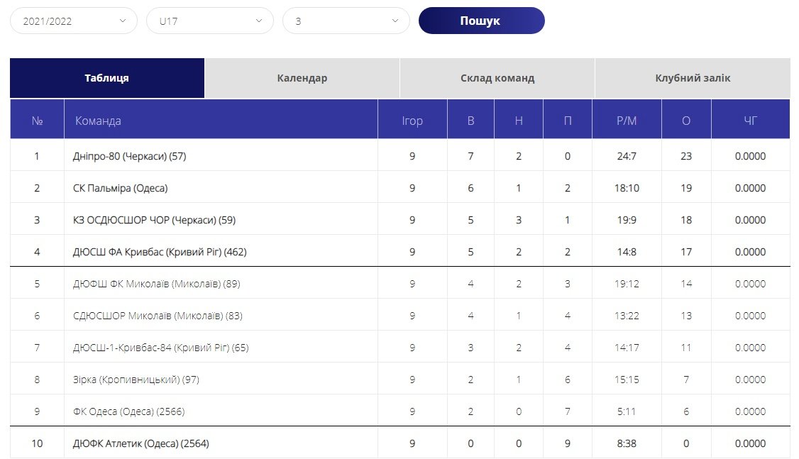 Цими вихідними завершилось перше коло ДЮФЛУ. За підсумками виступів «Дніпро-80» посідає другу сходинку в загальнокомандному заліку, а «ОСДЮСШОР» на 10 місці.