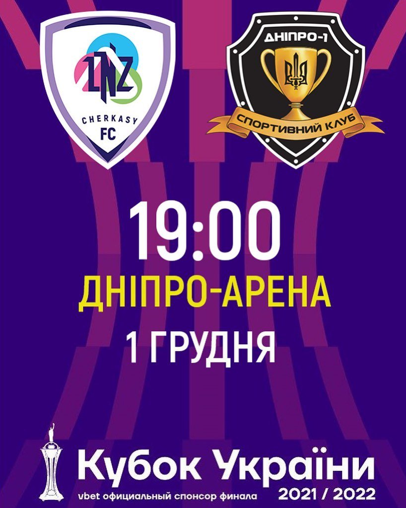 Гру 1/8 фіналу Кубку України між ЛНЗ та Дніпром-1, відбудеться не в Черкасах. Поєдинок пройде у Дніпрі 1 грудня о 19:00.