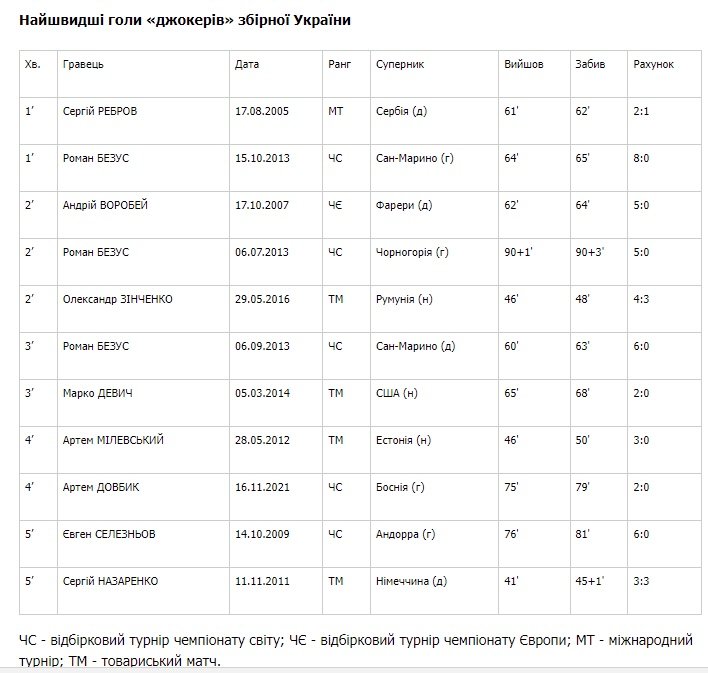 В офіційних матчах менше часу на гол серед «джокерів» нашої національної дружини знадобилося тільки Роману Безусу (тричі!) та Андрію Воробью. А на чужих полях – лише тому ж Безусу у зустрічах із Сан-Марино та Чорногорією у відбірному турнірі ЧС-2014.