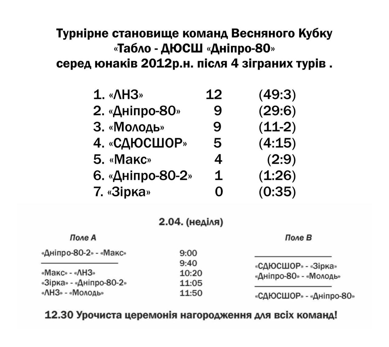 У Черкасах триває Весняний Кубок «Табло-Дніпро-80» з футболу серед юнаків 2012 р.н.
