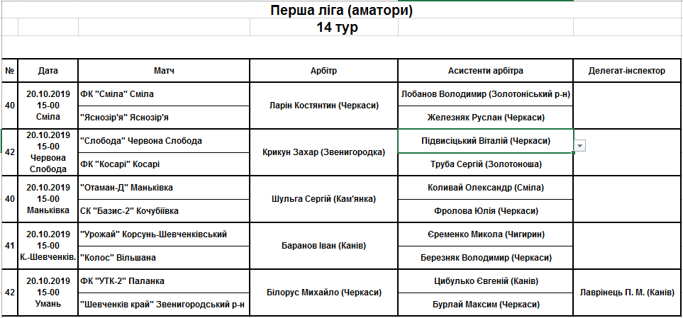 Федерація футболу області призначила арбітрів на прийдешні вихідні.