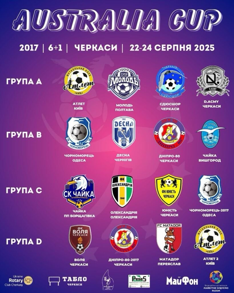 У Черкасах 22 серпня стартує четвертий етап «Australia Cup». У гру вступають юнаки U-9 (2017 р.н.).