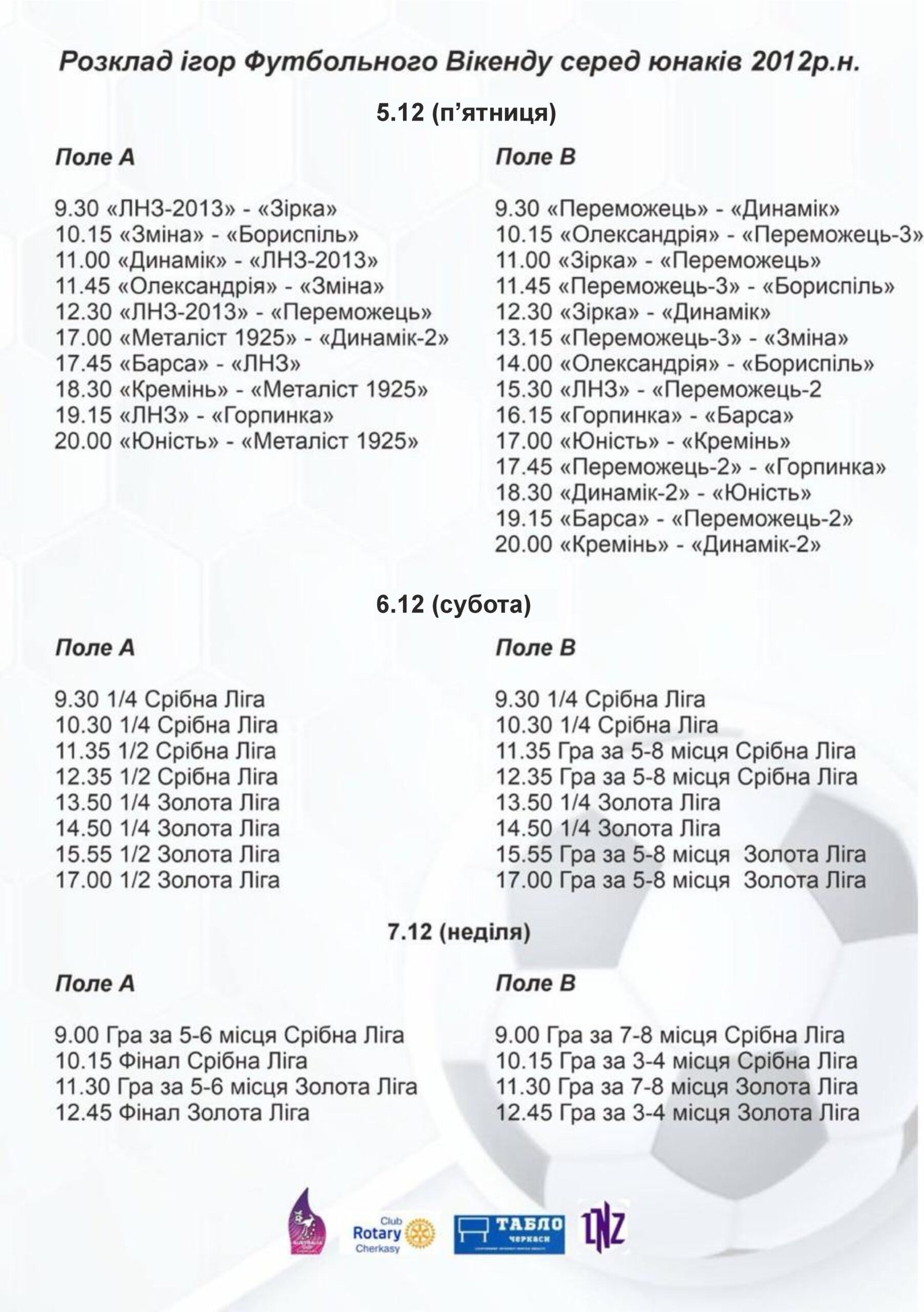 У нашому місті 5 грудня розпочнеться третій етап турніру «Футбольний Вікенд». У гру вступають юнаки 2012 року народження. До Черкас на три дні завітають команди з різних куточків України та місцеві вихованці спортивних шкіл.