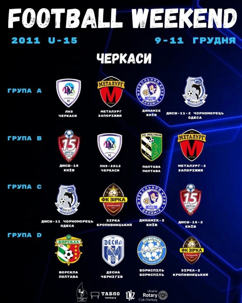 У нашому місті 9 грудня розпочнеться четвертий етап турніру «Футбольний Вікенд». У гру вступають юнаки 2011 року народження. До Черкас на три дні завітають команди з різних куточків України та місцеві вихованці спортивних шкіл.