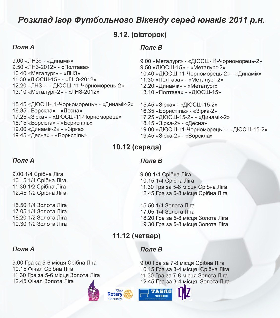Розклад і результати матчів, а також турнірні таблиці в режимі live: https://www.tournifyapp.com/live/footballweekend2025/standings