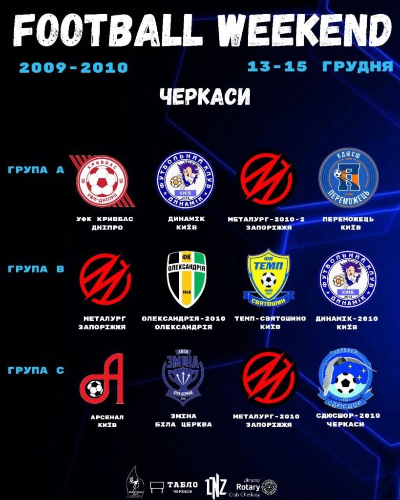 У нашому місті 13 грудня розпочнеться п’ятий етап турніру «Футбольний Вікенд». У гру вступають юнаки 2009-2010 року народження. До Черкас на три дні завітають команди з різних куточків України та місцеві вихованці спортивних шкіл.