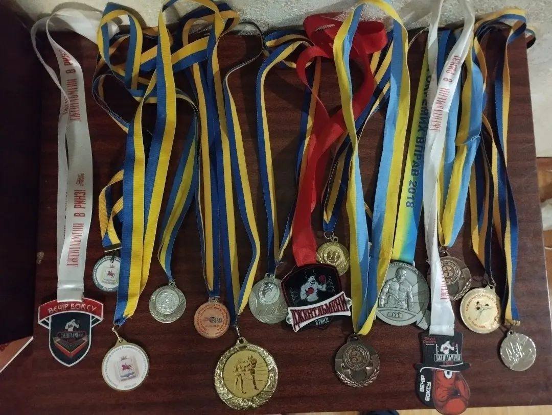 “Медалі періоду до перелому хребта і після, – розповідає військовий. – Медалі Чемпіона України, призера, та призера обласних та районних змагань. З кікбоксингу, пауерліфтингу, гирьового спорту, боксу, армреслінгу, греблі на концертах. Участі в боксерських шоу. Ціль – збір на ЗСУ з покриттям суми для антидронового щита для моїх хлопців”.